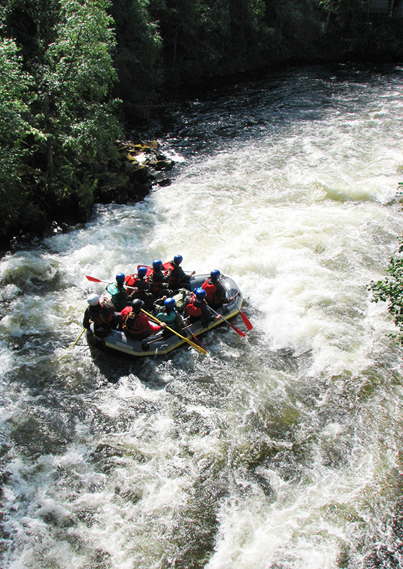 Rukalla riittää tekemistä ja kauniita maisemia ympäri vuoden. Talvisin suksien lisäksi voi huristella vaikka moottorikelkalla, kesäisin vauhtia tuo kesäkelkkarata ja koskenlasku. |
