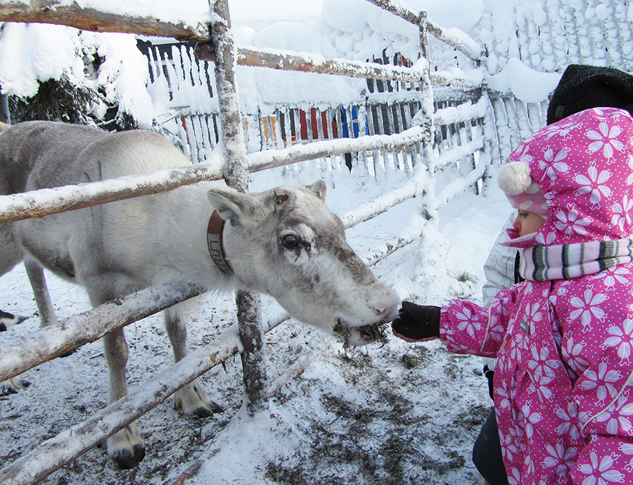 Lammintuvan porotilalle pääsee sekä hiihtäen, moottorikelkkaillen että autolla. Tilan kahvilasta löytyy maistuvaa uunituoretta pullaa, tila tarjoaa myös mm. poro- ja huskyajeluja sekä lasten moottorikelkkailua. Osoite: Takalontie 15, 93999 Kuusamo. Tarkista aukioloajat ja hinnat Lammintuvan kotisivulta. Karttalinkki.